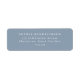 Estas elegantes y modernas etiquetas de dirección boda presentan un diseño de texto sencillo en blanco y azul polvoriento que rebosa de estilo minimalista.