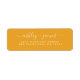 Moda, moderna etiqueta de dirección de retorno boda con sus nombres en un elegante guión manuscrito blanco sobre un fondo amarillo suave. Simplemente agregue sus nombres y dirección. Diseñado exclusivamente para usted por Happy Dolphin Studio. Si necesita ayuda o productos coincidentes, póngase en contacto con nosotros en happydolphinstudio@outlook.com. ¡Estamos encantados de ayudarle a hacer de su boda el día más hermoso!