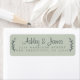Moda, sencillo y moderno rótulo de la dirección de retorno boda incluye sus nombres en una elegante caligrafía de escritura manuscrita y tipografía de color negro sobre un fondo verde pastel con un toque elegante de follaje rústico. Simplemente agregue sus nombres y dirección al pegatina rsvp. Diseñado exclusivamente para usted por Happy Dolphin Studio. Si necesita ayuda o productos coincidentes, póngase en contacto con nosotros en happydolphinstudio@outlook.com. ¡Estamos encantados de ayudarle a hacer de su boda el día más hermoso!