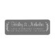 Moda, sencillo y moderno rótulo de la dirección de retorno boda muestra sus nombres en blanco y elegante caligrafía de escritura manuscrita y tipografía sobre un fondo gris oscuro con un toque elegante de follaje rústico. Simplemente agregue sus nombres y dirección al pegatina rsvp. Diseñado exclusivamente para usted por Happy Dolphin Studio. Si necesita ayuda o productos coincidentes, póngase en contacto con nosotros en happydolphinstudio@outlook.com. ¡Estamos encantados de ayudarle a hacer de su boda el día más hermoso!