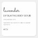 Texto moderno del margen de la mano izquierda para sus exfoliantes productos de cara, mano, pie y cuerpo.