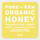 Etiquetas modernas, simples y mínimas de tarro de miel con el texto miel orgánica pura cruda y tu nombre de negocio en tipografía moderna sobre un fondo amarillo iluminante. Simplemente añada tu nombre colmenar, el nombre del producto, tu sitio web comercial, dirección y el peso a la etiqueta. Diseñado exclusivamente para apicultores por Happy Dolphin Studio. Si necesita ayuda o productos coincidentes, por favor contáctenos en happydolphinstudio@outlook.com.