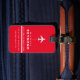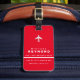 Etiqueta moderna de la bolsa de viaje roja con nom