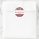 Estos pegatinas personalizados de etiquetas de enlatado redondo para sus productos caseros presentan un moderno patrón rojo oscuro y blanco y blanco oscuro y texto en blanco y rojo oscuro.