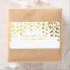 Etiqueta de envase moderno de Confetti blanco y Relieve metalizado dorado. Personalizar con cualquier texto.