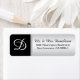 Elegantes etiquetas de dirección de retorno en plata, negro con letra de diseño monograma inicial. Añada estos datos a los sobres para añadir un toque de clase. Perfecto para cualquier ocasión: boda, cumpleaños, invitación, graduación. Plantillas editables: agregue su propia información. Encontrado en la colección "DIRESS RETURN LABELS"