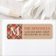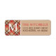 El diseño de la etiqueta de la dirección de retorno de vacaciones incluye un elegante diseño rústico de color beige, canto, marrón y manta de lona tártara roja con una dirección de retorno inicial y personalizado monograma que puede ser personalizada para su familia.