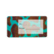 Etiqueta Monograma Vaca Marrón y Estampado Azul Turquesa