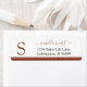 Simple y moderna familia de etiquetas de dirección de devolución de letras iniciales para sus correspondencias. El elegante guión ondulado coincide con el diseño de la línea en el naranja de color quemado por roya, pero lo compensa con estilo, creando un divertido giro en el aspecto minimalista.