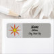 Esta etiqueta de dirección de retorno presenta un sol naranja y amarillo con un diseño de mosaico. El texto se puede personalizar rápidamente y el color de fondo sólido se puede personalizar si lo desea.