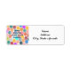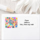 Estas etiquetas de dirección de retorno tienen un diseño de círculos concéntricos con una cita de Beyoncé celebrando a las mujeres.