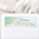 Etiqueta de la dirección del tema musical para complementar nuestras invitaciones mitzvah del murciélago de la música acuarela. Estrella dorada de David con equipo de música y notas en azul brillante y oro.