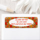 Estas etiquetas de dirección de retorno tienen un diseño art deco de tulipanes de pentagones y trapezoides en diferentes tonalidades de naranja.