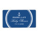 Personalizado azul marino y blanco marca de botellas de agua de la ducha náutica con ancla pequeña de la barca. Pegatina de botella de agua DIY elegante y personalizado con anclajes de barco lejos. Tipografía de escritura elegante para el nombre y la fecha de nacimiento de la niña o el niño. La decoración de las mesas marítimas es muy elegante, o gracias a los clientes del fiesta. Diseño de plantilla neutra con color de fondo de personalizable, es decir, azul pastel, gris claro, morado o amarillo suave. Tema marinero.