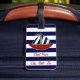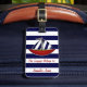 Esta etiqueta náutica del equipaje del velero parecerá linda y de moda si vuela a la playa o cruza los mares. Esta marina de guerra de las características del diseño y rayas blancas con un rojo, un blanco y un velero de la marina de guerra. Personalizar con su nombre y dirección.