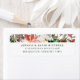 Estas elegantes etiquetas de regresos de bodas de vacaciones cuentan con flores de acuarela rústicas con pinecones, ramas, bayas, hojas, flores rojas y rosas blancas.