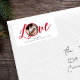 Este diseño presenta un caprichoso Navidad vacaciones Navidades familiares modernos y sencillos vacaciones amor simple moderno, sello para sobres de dirección vuelta con elegante escritura familiar de caligrafía linda, texto minimalista de tipografía roja, una foto de diseño limpio, único minimalista, minimalista, minimalista, moderno y elegante estilo moderno, letra moderna de guión de caligrafía, plantilla de tipografía caprichosa, lindo clásico contemporáneo, alegría de paz y cita amorosa Navidades etiqueta de regalo de vacaciones.