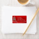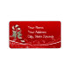 Un bastón de caramelo con una cinta hueca sobre un fondo rojo con adornos de nieve. Usar como un stick en la etiqueta de regalo o como una plantilla de etiqueta de dirección. El texto es personalizable.