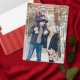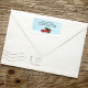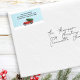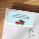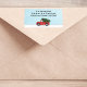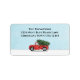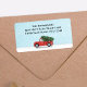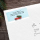 Este diseño presenta un sello de dirección de vacaciones para Navidades, rojo y verde, acuarela, diseño rústico de un camión rojo. un clásico árbol de Navidad en la cama de un camión, un gran accesorio de correo de vacaciones, con un sencillo diseño minimalista y caprichoso.