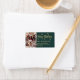 Moderna foto de copos de nieve verde y dorado Feliz Navidades navideños navideños de Navidad Regresan las etiquetas de la dirección. Incluye un guión de "Feliz Navidad", una foto familiar, copos de nieve con fondo verde. Ideal para la temporada de vacaciones de los Navidades, fácil de personalizar con tus nombres y la información de la dirección de retorno.