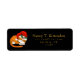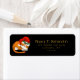 Esta tipografía de oro de personalizable y el diseño de la etiqueta de la dirección de retorno de guión presentan un lindo naranja a rayas dormidas, tabby Navidad gato con sombrero de Santa y timbre holly sobre un fondo negro. Puede cambiar fácilmente el color de fondo, el nombre y la ortografía de la dirección; el estilo de fuente, el color y el tamaño con el botón Personalizar de Zazzle.
