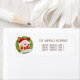 Este rótulo de dirección de retorno muestra a un lindo Padre Papá Noel que es alegre y sonríe saliendo de una corona de Navidades decorada con adornos, campanas de jingle, flor, caña de caramelo, estrella y mistletoe. ¡Él está aquí para dar regalos a todos! Personaliza con tu dirección.