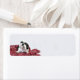 Shih Tzu blanco y negro en Navidades rojos Navidades de fotos de la guirnalda devuelven la etiqueta de dirección