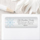 Bonitas etiquetas de dirección de devolución de sobres festivos para tarjetas de vacaciones de Navidades de felicitación. Copo de nieve azul y plateado con nombre y dirección familiar personalizados.