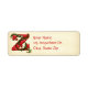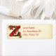 Decoren sus sobres y tarjetas de Navidades de temporada navideña con esta etiqueta de dirección de retorno que tiene una hermosa letra roja monogramada Z adornada con ungüento contra un fondo tan anticuado. La imagen de fondo del personalizable se puede eliminar si prefiere un fondo blanco, o puede cambiarla al color que elija con el botón personalizar.