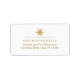 Estos Navidades de vacaciones se dirigen a las etiquetas como una forma elegante de hacer saber a sus amigos y familiares que usted tiene una nueva dirección. Un copo de nieve dorado y textos de color dorado decoran un fondo blanco de invierno.