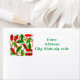 Estas etiquetas de dirección de retorno tienen un diseño Bauhaus de ovales y rojos y verdes.