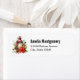Etiquetas de direcciones con una acogedora imagen de Navidad con una linterna roja rodeada de pino y una poinsettia y hule.