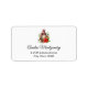 Etiquetas de direcciones con una acogedora imagen de Navidad con una linterna roja rodeada de pino y una poinsettia y hule.