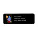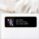 Envíe saludos de temporada con todo su correo con este lindo Navidad de snowman que devuelve la etiqueta de la dirección con las palabras de personalizable "¡Feliz Navidad!" y su dirección u otra información. Coordine con las tarjetas Navidades o invitaciones correspondientes. El muñeco de nieve usa un tobogán y una bufanda azul y turquesa y un suéter morado de lavanda y sostiene un cartel que dice "rocamos". Un pájaro rojo vuela cerca y las estrellas están en el fondo negro. Un cubo de menta a rayas sostiene un montón de bolas de nieve. El niño de la nieve sostiene un cartel que dice "Rock". Un pájaro rojo vuela por encima. Personalizable total para difundir alegría por las vacaciones. Este diseño es arte original de Phyllis Dobbs y viene a coordinar productos en esta tienda. Personalizar total para su evento para Navidades o eventos de invierno.