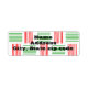 Estas etiquetas de dirección devueltas tienen un diseño moderno de mediados de siglo que parece un tejido con líneas rojas y verdes en un campo de blanco.