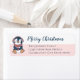 Bebé lindo pingüino merry Personalizado de escritura navideña Textos sobre el bebé rosado y blanco etiqueta de la dirección de retorno.