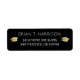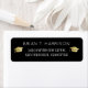 Diseño de una etiqueta de dirección de grado con la imagen de gorras de grado, nombre del antiguo estudiante e información adicional (estilo elegante y fino de letra blanca) en negro