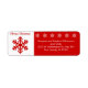 Sencillos copos de nieve de invierno de Feliz Navidad en colores de vacaciones de rojo y blanco. Festividad y diversión como las etiquetas de la dirección de retorno para sus tarjetas de Navidad, invitaciones de fiesta o envío de paquetes. La temática de diseño estacional puede ser clásica o moderna. Sólo tienes que añadir tu nombre y dirección, nombre comercial o cualquier otro texto si es para un uso diferente, y ajustar el tamaño de palabra si es necesario.