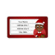 Etiquetas con el ilustracion de un lindo sonriente niño afroamericano con el pelo negro corto, el niño está usando un disfraz de Papá Noel con un gorra rojo y sosteniendo un regalo; en un círculo rojo sobre un fondo rojo, un Navidad de vacaciones diseño con una plantilla de texto editable para tu nombre y dirección