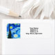 Etiquetas de dirección de retorno que muestran la pintura al óleo de Vincent van Gogh La noche estrellada (1889). Inspirado por su estancia en un asilo, el arte representa un pueblo bajo un cielo nocturno de estrellas y luna azul y amarilla. Un gran regalo para los aficionados al post-impresionismo y al arte holandés.