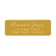 Una etiqueta de nombre y dirección de devolución con tema dorado y blanco con su nombre en una fuente de escritura encima de los detalles de su dirección en un texto clásico.