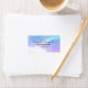 Etiquetas de direcciones con una imagen de fondo suave y encantadora. Tonos azules y nubes rosas con un arcoiris mágico.