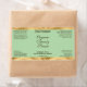 This elegant product label for cosmetic bottles features an olive green background with faux gold foil borders. This label contains space for your product name, business name, product weight, ingredients, instructions, social media, and business address. This label measures 3.75 inches by 2 inches (95 mm by 51 mm) and is suitable for bottles with a diameter of 1.2 inches (31 mm) or more such as 2 to 4 oz (60 to 120 ml) bullet, cylinder, and boston round bottles. It can also be used for cosmetic jars and other types of cosmetics packaging.