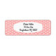 Estas etiquetas de dirección devueltas tienen un diseño Art Déco de líneas curvas de salmón en forma de triángulo sobre un campo blanco repetido a lo largo del diseño.