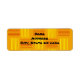Estas etiquetas de dirección de retorno tienen un diseño moderno de mediados de siglo que parece un tejido con líneas rojas y amarillas en un campo de oro.