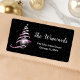 Esta elegante etiqueta de dirección de moda incluye un árbol navideño de cinta rosa y negra con una baudible. El texto combina el guión manuscrito y las fuentes sans serif modernas para un aspecto elegante y sofisticado. La caída de la nieve, los copos de nieve y las chispas dan un toque festivo y mágico. Ideal para los Navidades y para las vacaciones.