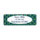 Estas etiquetas de dirección de retorno tienen un diseño moderno de ovalos en verde azulado de semicírculos en verde y marina dentro de ellas en un campo de turquesa.