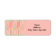 Estas etiquetas de dirección de retorno tienen un diseño hecho de ovales largos rellenos de color sólido o líneas en rosa, coral, verde y azul.