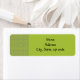 Estas etiquetas de dirección de retorno tienen un diseño art deco de ovales verdes con líneas grises y diamantes con diamantes entre en un campo de blanco.