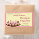 El plato de comida, lleno de pastelitos decadentes, se esconde en la esquina inferior izquierda de la etiqueta, con un fondo de amarillo pálido, todo rodeado por un borde y un fondo de color rosa, lo que hace de esta etiqueta perfecta para usar en sus productos horneados caseros como regalo o para vender en los mercados de los granjeros. El texto está en forma de plantilla para que pueda cambiarlo a lo que desee.